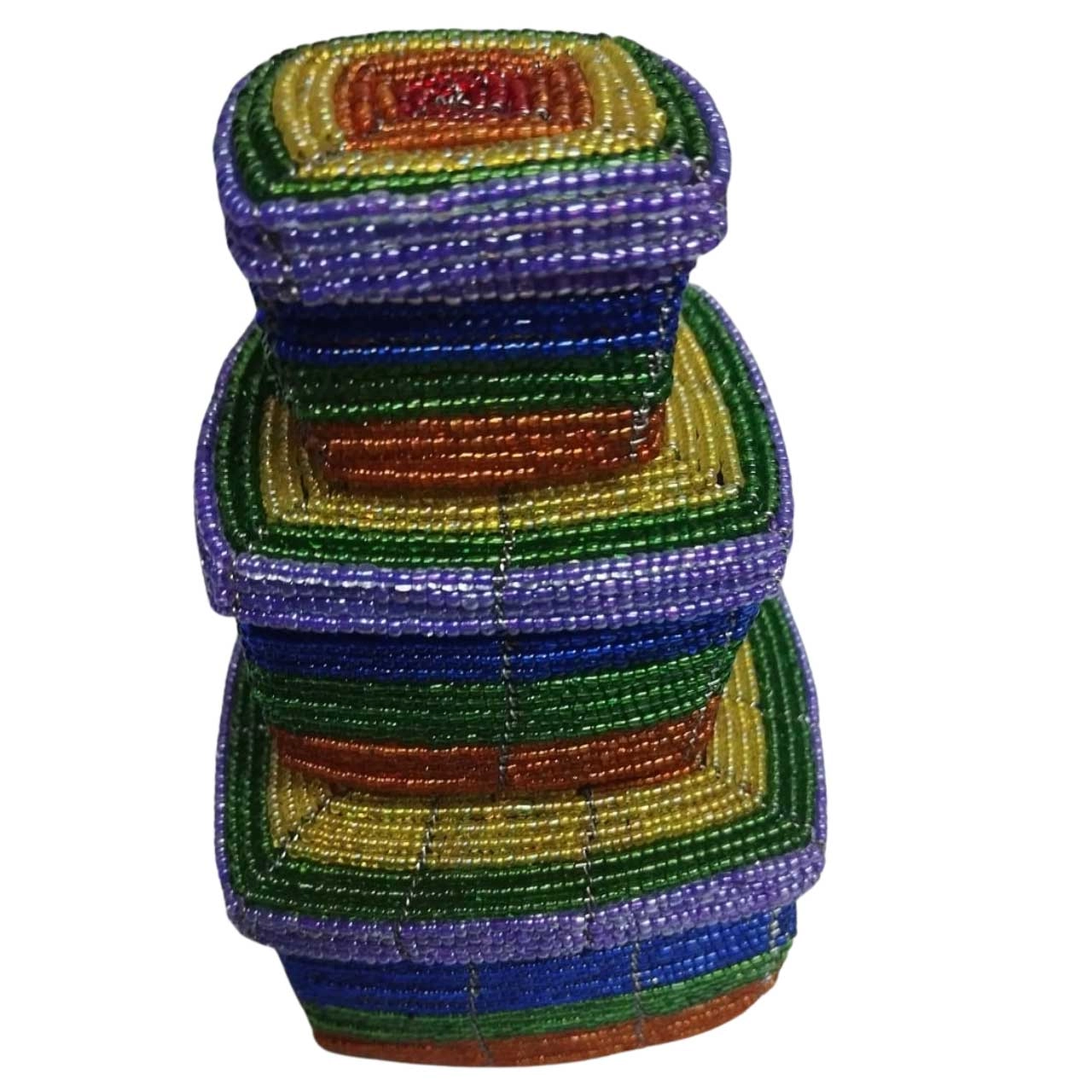 Jorova beaded square box set of 3 (available also in oval and round shape)